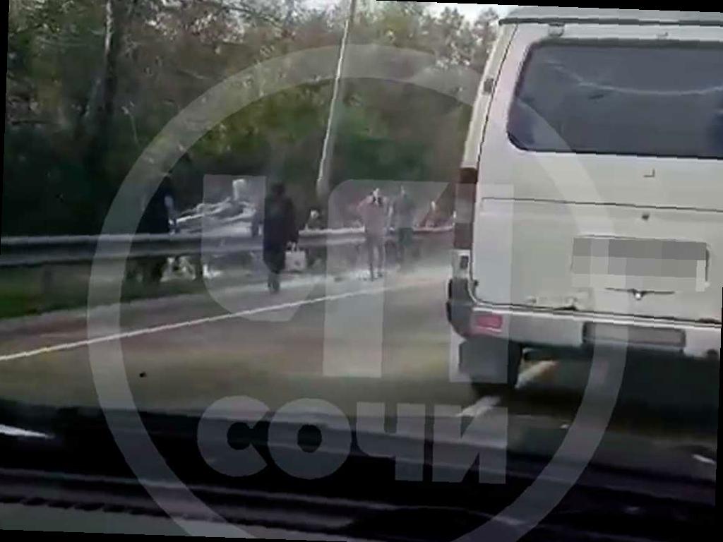 Сегодня днем в Лазаревском районе курорта произошло серьезное ДТП. На трассе «Джубга — Сочи» в селе Нижняя Хобза внедорожник вылетел на обочину, перевернулся на крышу и загорелся. На месте происшествия работает пожарный расчет, по данным МЧС, один человек погиб, двое получили травмы.
